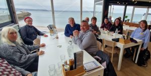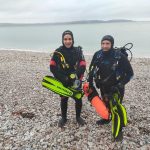 Sunday 9th Nov. Underwater beach clean. 12 Exeter BSAC divers got in early to do an underwater clean around Babbacombe Beach. We had shore cover and surface help from other family members. The poor underwater viz made the task challenging, but we retrieved lots of broken fishing tackle and other rubbish. The divers had been well briefed, and no one got tangled in netting. The divers released both a lobster and a cat shark that were wrapped in fishing line. After the dive, we sorted out the litter, then went for a well earned brunch. An excellent mornings work – so well done to all. 🙂